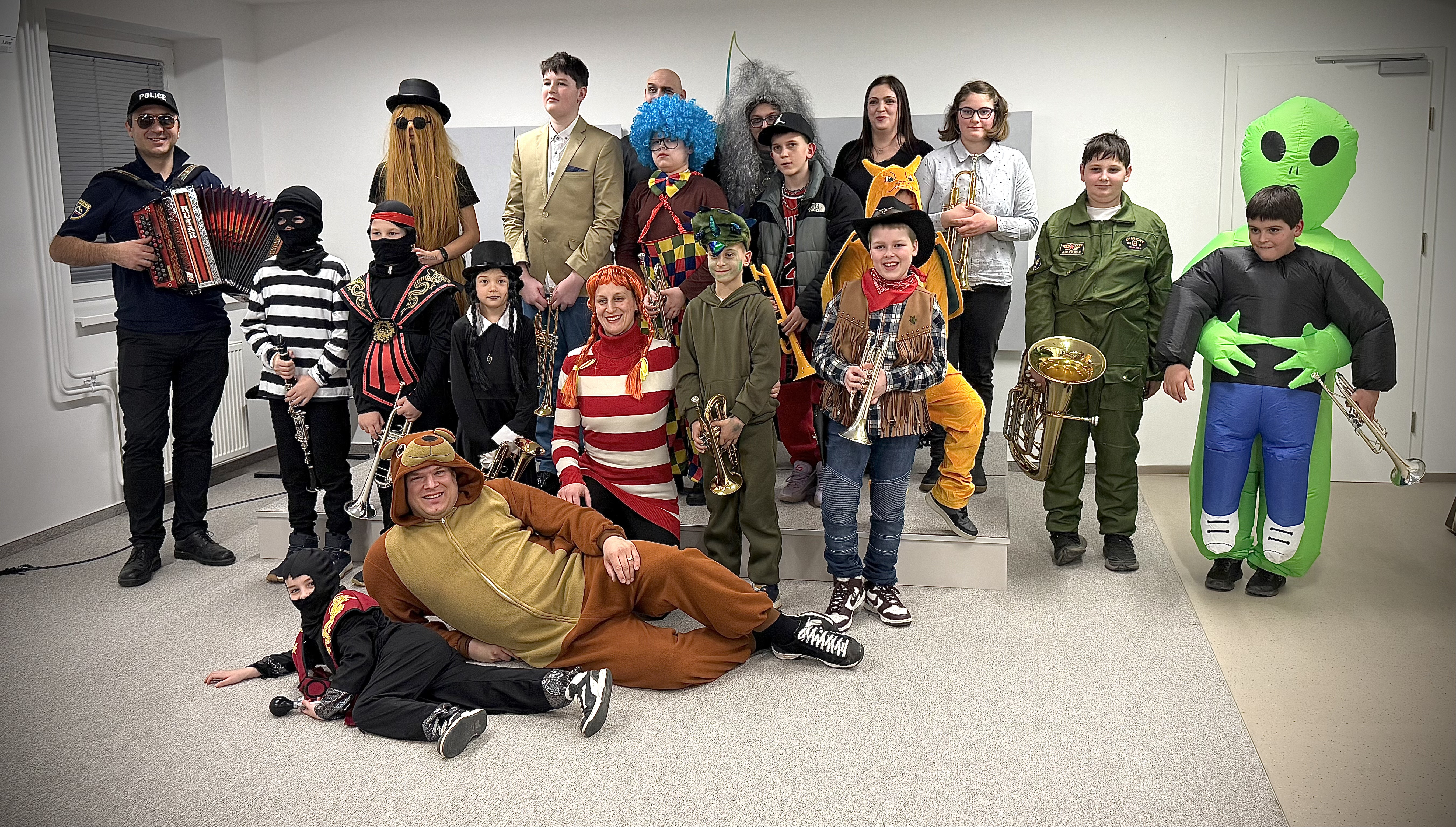 V torek, 17. februarja 2026, je v dvorani Glasbene šole Trebnje potekal pustni nastop učencev trobil iz razreda Davida Kajiča.
