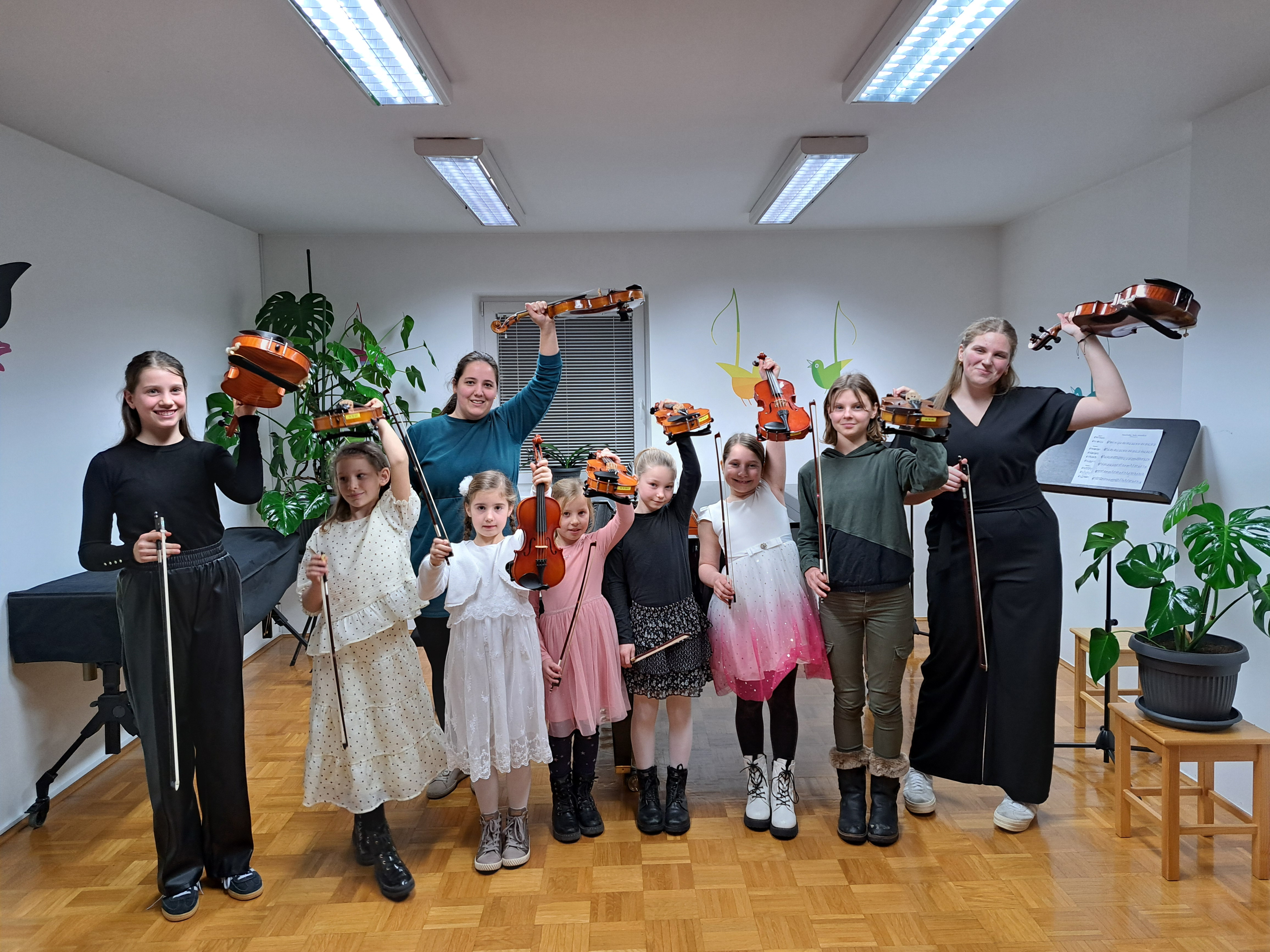 Prvošolke so se predstavile vsaka z dvema pesmicama, starejše učenke pa so prikazale tudi nekaj virtuoznosti. Na klavirju jih je spremljala učiteljica Jasmina Raković. Na nastopu sta se nam pridružili tudi dve mladi bodoči korepetitorki Zoja in Evelin, ki sta spremljali sestrico in sestrično Brino. Zojina mentorica je Jasmina Raković, Evelinina pa Eva Zec.
